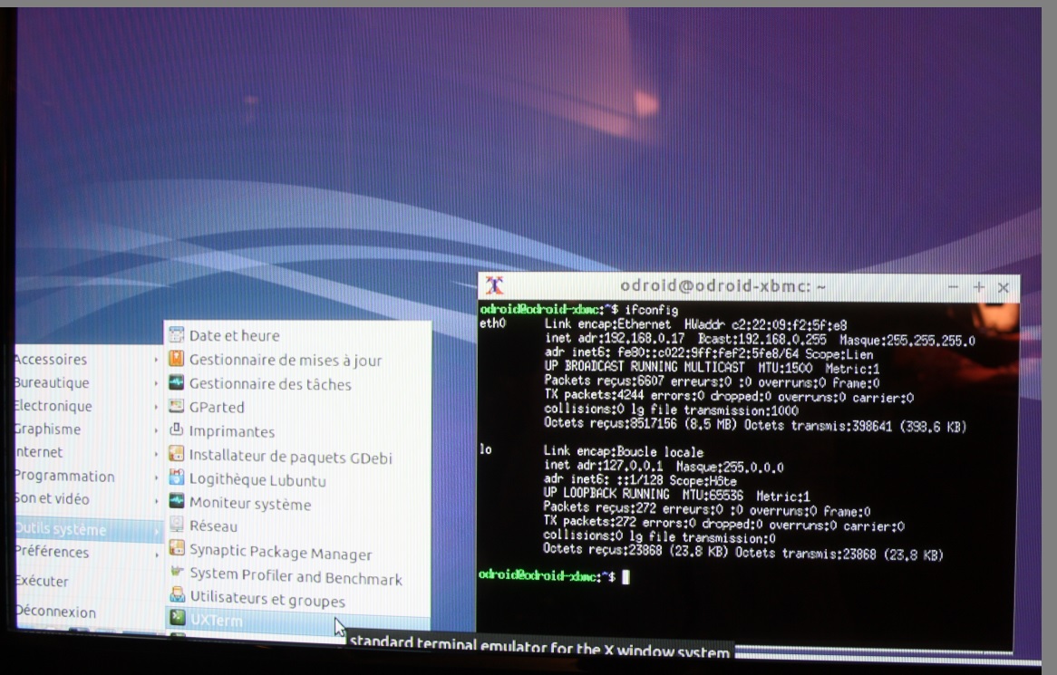 En ce qui me concerne, ça pique les yeux de faire du mode texte sur mon téléviseur alors j'accède à l'odroid en SSH depuis mon PC. Pour ce faire, je détermine l'IP de l'odroid avec la commande ifconfig.
